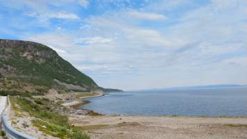 Arriving at the coast the change of scenery couldn't be more drastic: no more tundraesque wildernis where vegetation is limited to bushes and lichen, but picturesque fishing villages lining luxurious bays with rough crags towering over the sea in between. The atmosphere on the road was quite different as well: gone was the dominant utilitarian aspect as traffic was composed mostly of vacationers on four or two, and in one case a single wheel.