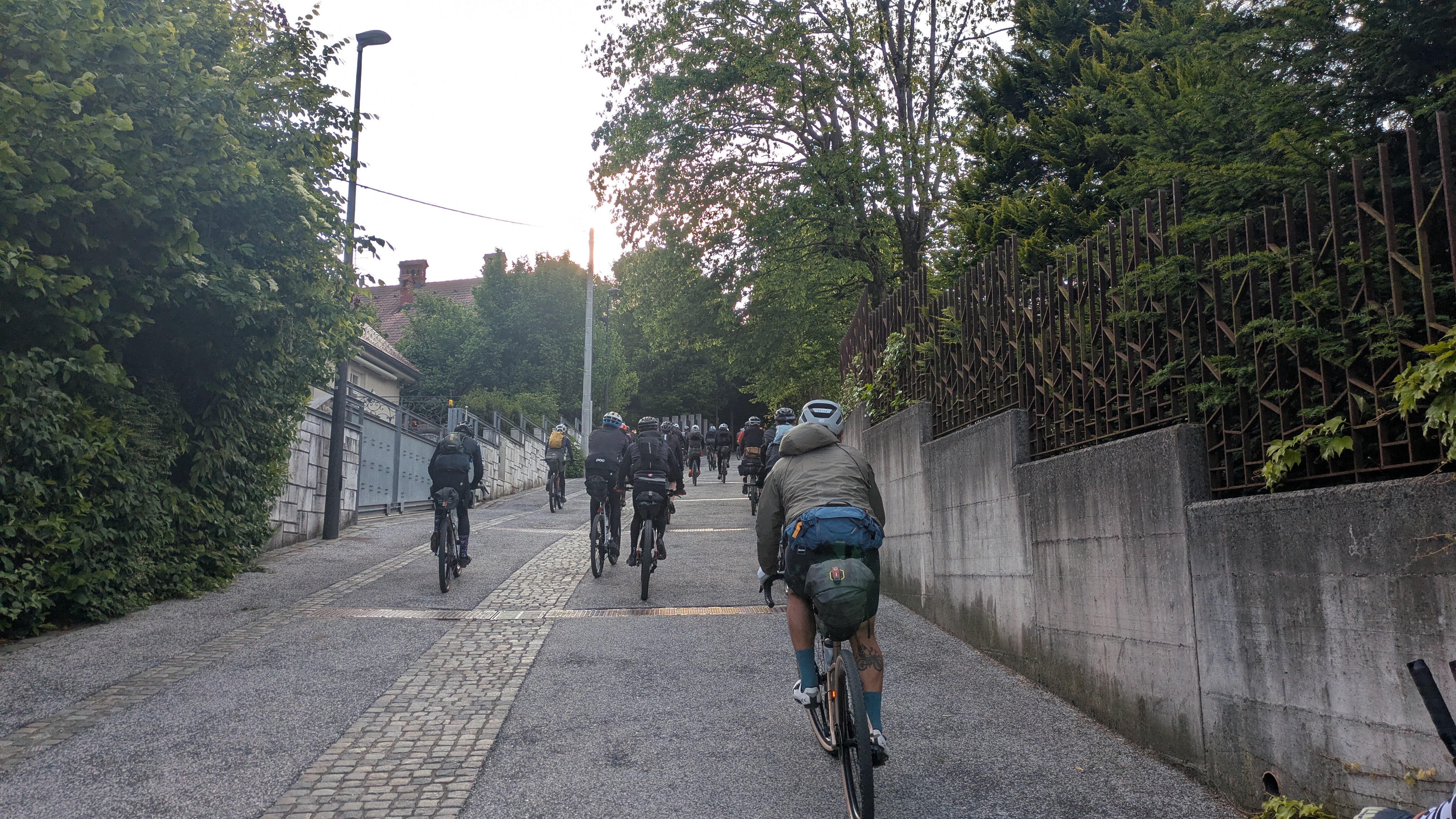All riders were assembled at the start line in LJubljana at 7 a.m. on a Sunday in okay-ish weather conditions. After "papa serpent" Bruno gave the go we immediately headed for the first big climb which caused the field to blow up an riders to form a long line with positions depending on climbing prowess. In Slovenia that was still the main criterium as the trails were, a few exceptions aside, rideable even by those without MTB tires and gearing.